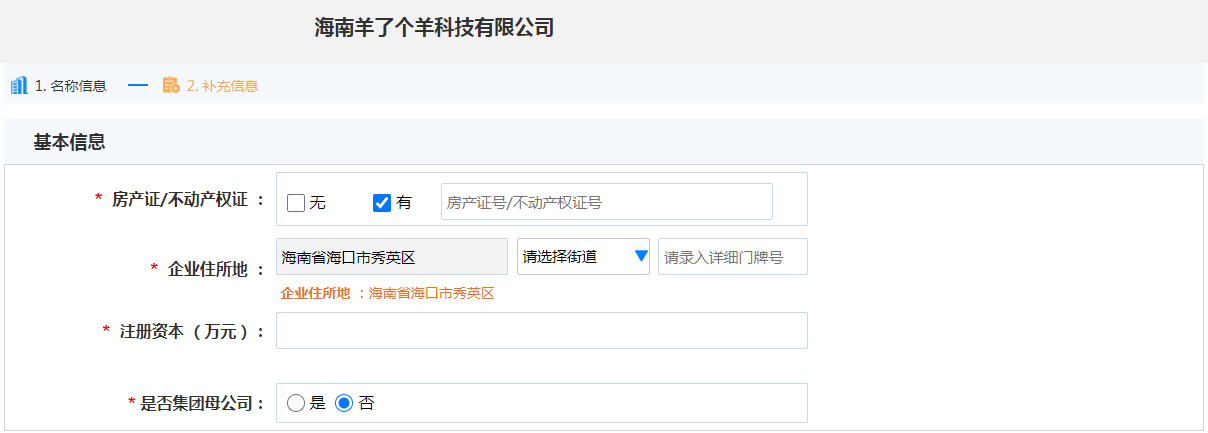 1、先申請企業名稱,確定羊了個羊這個字號;